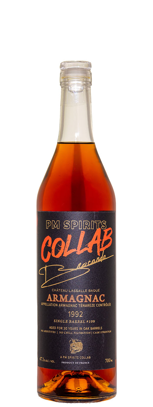 A new talent rises in Armagnac with this release. Remi Brocardo has returned to the family domaine to continue their long tradition of single estate armagnac. He's proven to be something of a wunderkind and this collab in particular with the great team at PM means extra effort has been made to put the absolute best and rare Armagnac in your glass. Distilled in 1992 and aged for 30yrs in a single cask of local oak aged in a natural earthen humid cellar, further concentrating the flavors, turning the texture to silk and coming down naturally to a cask strength that is extremely drinkable as is.