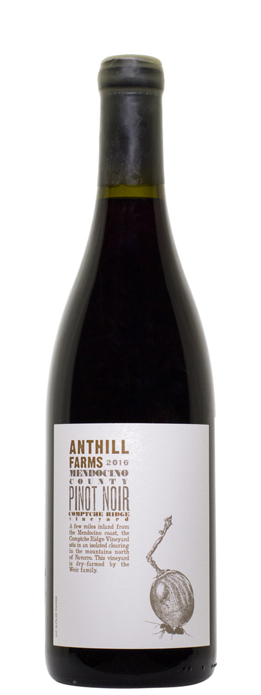 The 2016 Pinot Noir Comptche Ridge Vineyard is a powerful, exotic wine. Dense and almost inky, the Comptche Ridge presents a decidedly powerful, brooding expression of Anderson Valley Pinot. Hints of leather, smoke, tobacco and grilled herbs add nuance to this deeply resonant, expression of Pinot from Anthill Farms. There is so much personality here.