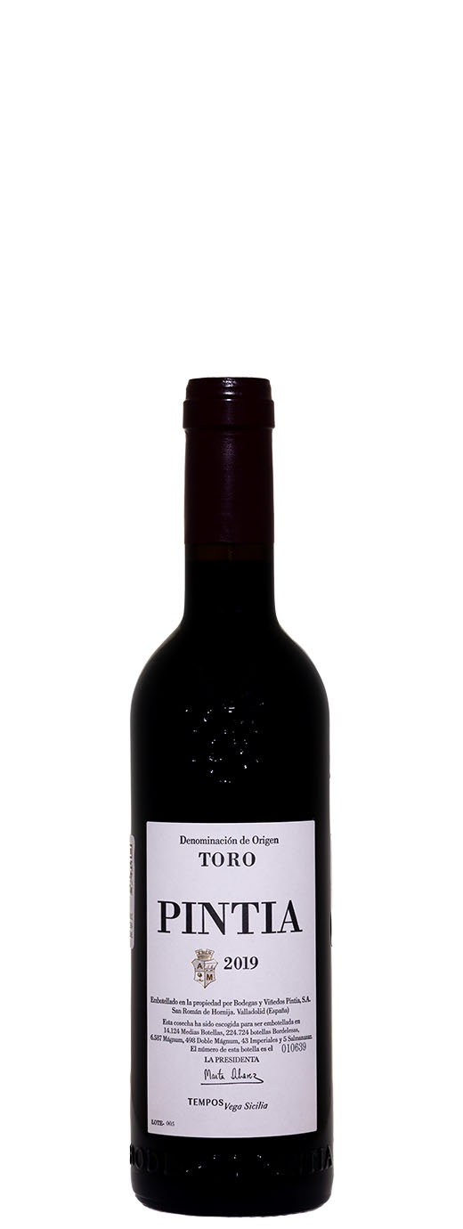 The wine released in 2024 is the 2019 Pintia, from a very dry year when they did a softer vinification and used some 15% stainless steel for the élevage to keep the fruit and freshness. It fermented with indigenous yeasts in stainless steel and oak vats. It's a powerful year; the wine has 15% alcohol and is round and full-bodied. It's a heady and ripe Pintia. They had to be careful with the harvest date, and they harvested early and quite quickly. Even though the wine is ripe and heady, with notes of grenadine and small ripe berries, it's also exotic and spicy, quite showy, lush and full-bodied, with the 2019 tannins. It's a more powerful wine that is going to require patience. They produced 224,724 bottles, 6,587 magnums and some smaller and larger sizes. It was bottled in May 2021.