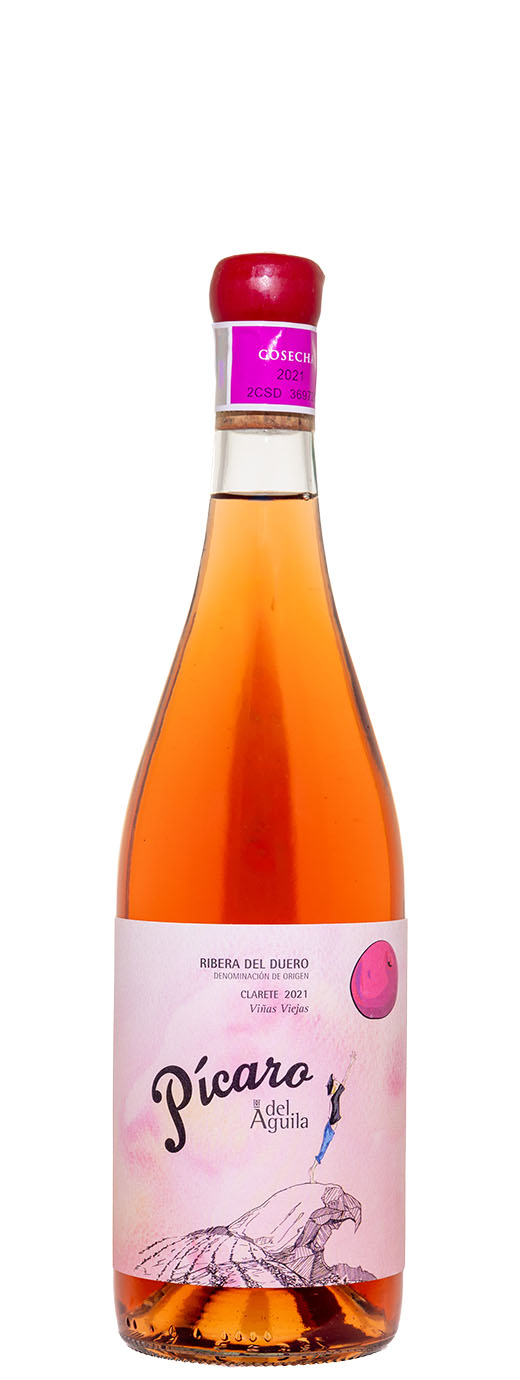 The pink clarete, produced with red and white grapes, 2021 Pícaro del Águila Clarete is a blend of 35% Tempranillo, 35% Albillo Mayor and the rest other local grape varieties (Garnacha, Bobal, Bruñal, Monastrell, Tempranillo Gris, other Albillos, Garnacha Blanca, Pirules, Jaén, Moscatel, Malvasías...) found in the old vineyards. It's produced like a red, aged in French oak barrels for 19 months. It's perfumed and balanced, aromatic and showy and not a shy wine, with 14% alcohol. It's tasty, juicy and velvety, with freshness and a peachy feeling, very sapid and fresh; it didn't go through malolactic and kept a pH of 3.14. It's a bit riper than previous years. 7,333 bottles and 179 magnums produced. It was bottled in April 2023.