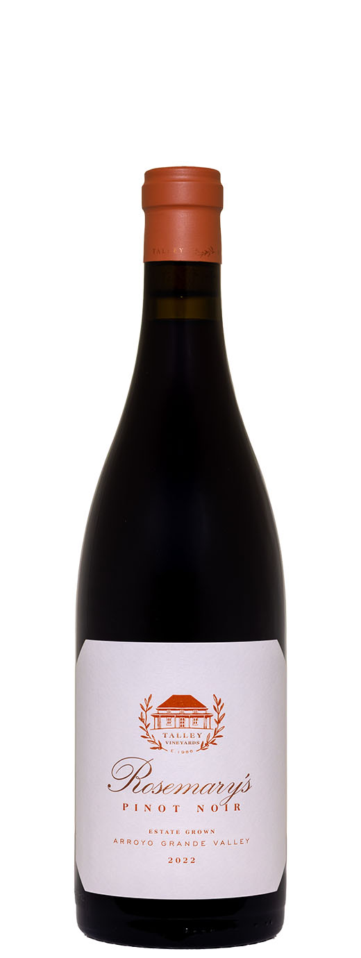 Medium ruby-purple colored, the 2022 Rosemary's Vineyard Pinot Noir waltzes out of the glass with gregarious notes of Morello cherries, mulberries, and fresh blackberries, opening out to underlying cumin seed, violets, and cloves hints. Medium-bodied, the palate is wonderfully juicy and floral with plush tannins and seamless freshness, finishing long and fragrant. This site is named after proprietor Brian Talley's mother and the vineyard surrounds her house.