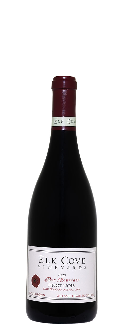 The 2023 Pinot Noir Five Mountain comes from 27- and 45-year-old vines planted in Laurelwood soils. Matured for 10 months in 20% new French oak, the nose is bursting with wild berries, blood orange, aniseed, damp earth, mushrooms and floral perfume. The full-bodied palate is concentrated and complex with detailed, spicy flavors. It’s structured by silky tannins and refreshing acidity and has a long, layered finish. 729 cases were made.