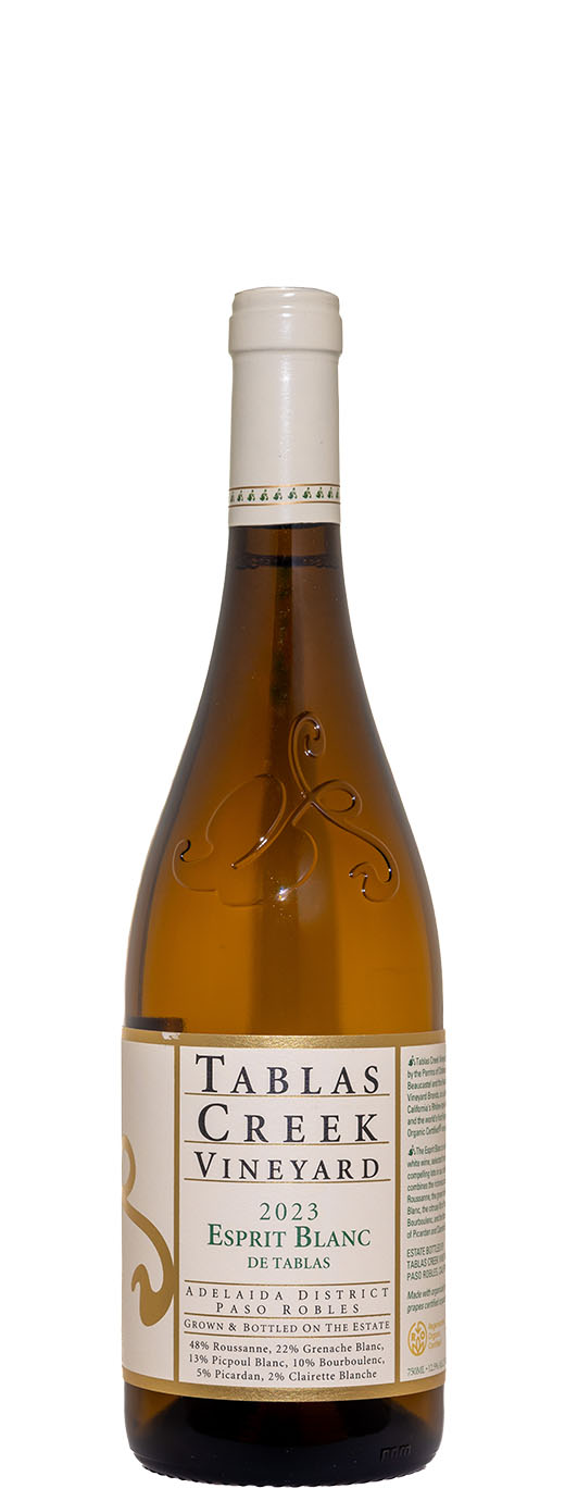 As I wrote last year, the 2023 Esprit de Tablas Blanc is poised and composed on the nose, straddling orchard fruit, citrus rind and white flower aromas with a rich, deep nuttiness at the core. The palate is punchy, powerful and round in texture with a surprising elegance and understated quality. The finish is seamless and direct, with a pleasing phenolic grip and lifted acidity surrounding a core of rich stone fruit flavors. This is a classic version of this wine, with perhaps a bit more energy overall, due to both the cool vintage and the lower percentage of Roussanne that has characterized the last few versions of this blend. This 2023 is composed of 48% Roussanne, 22% Grenache Blanc, 13% Picpoul Blanc, 10% Bourboulenc, 5% Picardan and 2% Clairette Blanche.