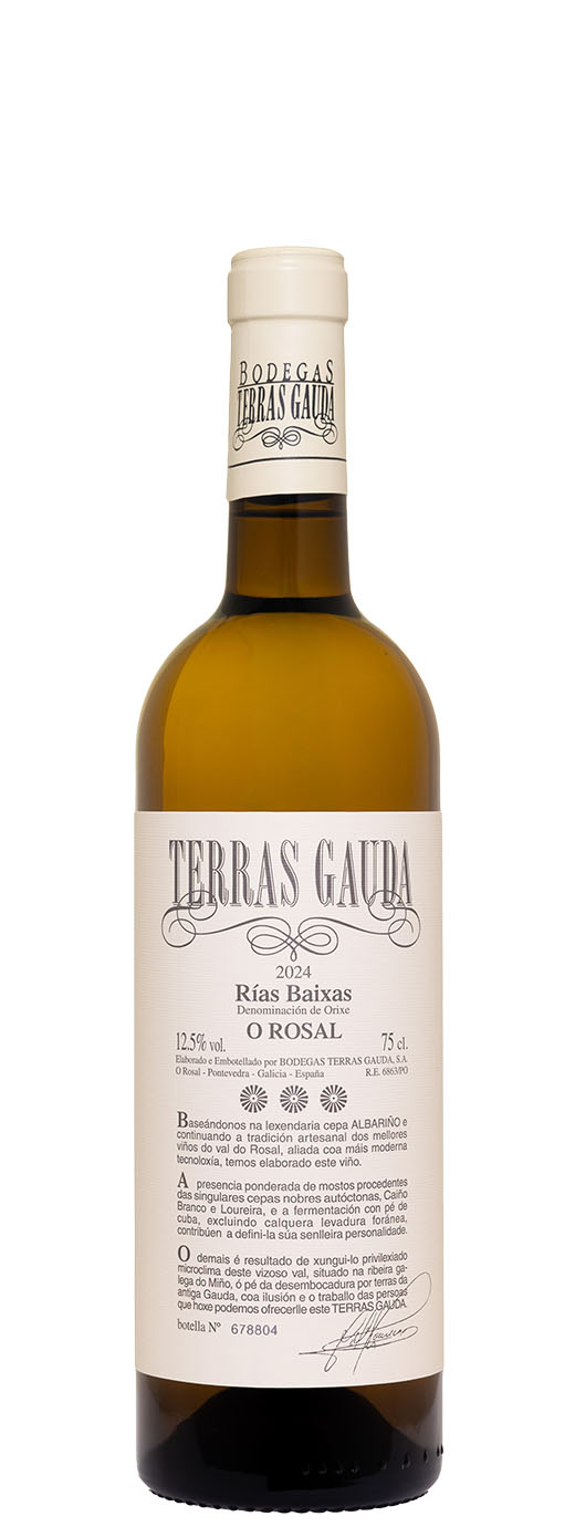 Terras Gauda is a wine of enormous aromatic and gustatory complexity. The three varietals form an excellent combination offering up a wide and very diverse array of aromas in which we can discern, in the foreground, lovely clean floral and fruity aromas of ripe peaches, tangerines and lychees, supported by subtle earthy and mineral overtones and delicate saline and minty notes.